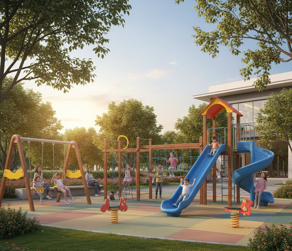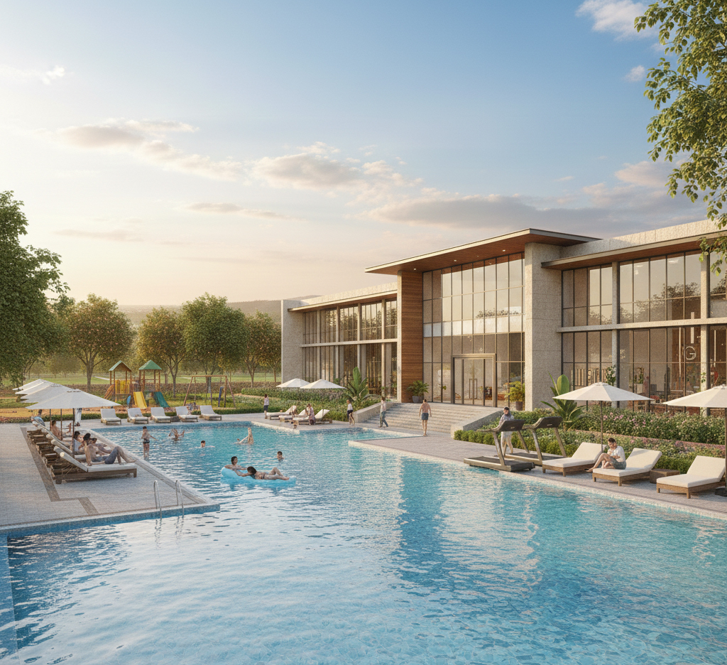 The township will have landscaped gardens, wide internal roads, secured entry/exit gates, kids’ zones, clubhouse spaces, and essential lifestyle amenities.